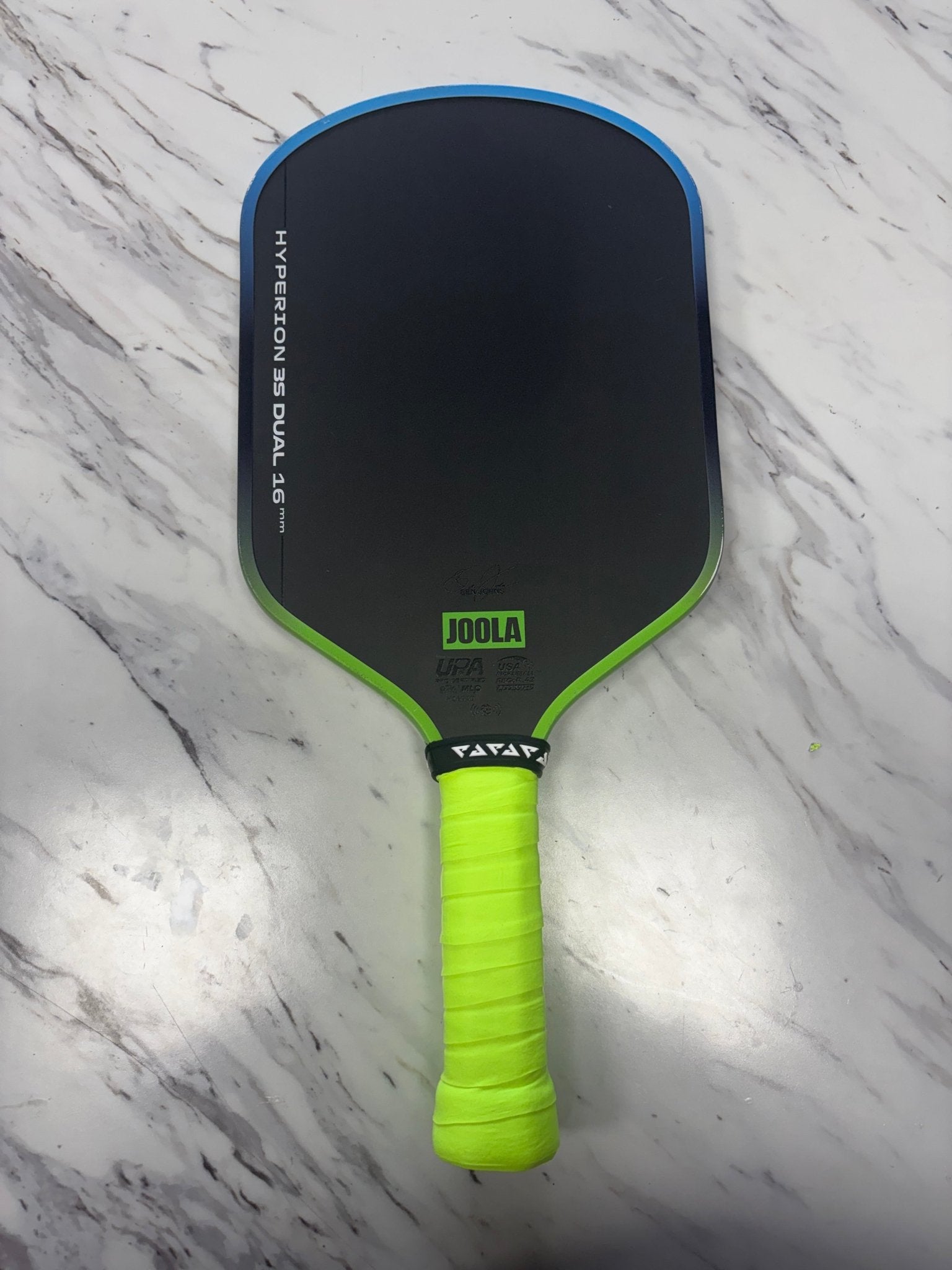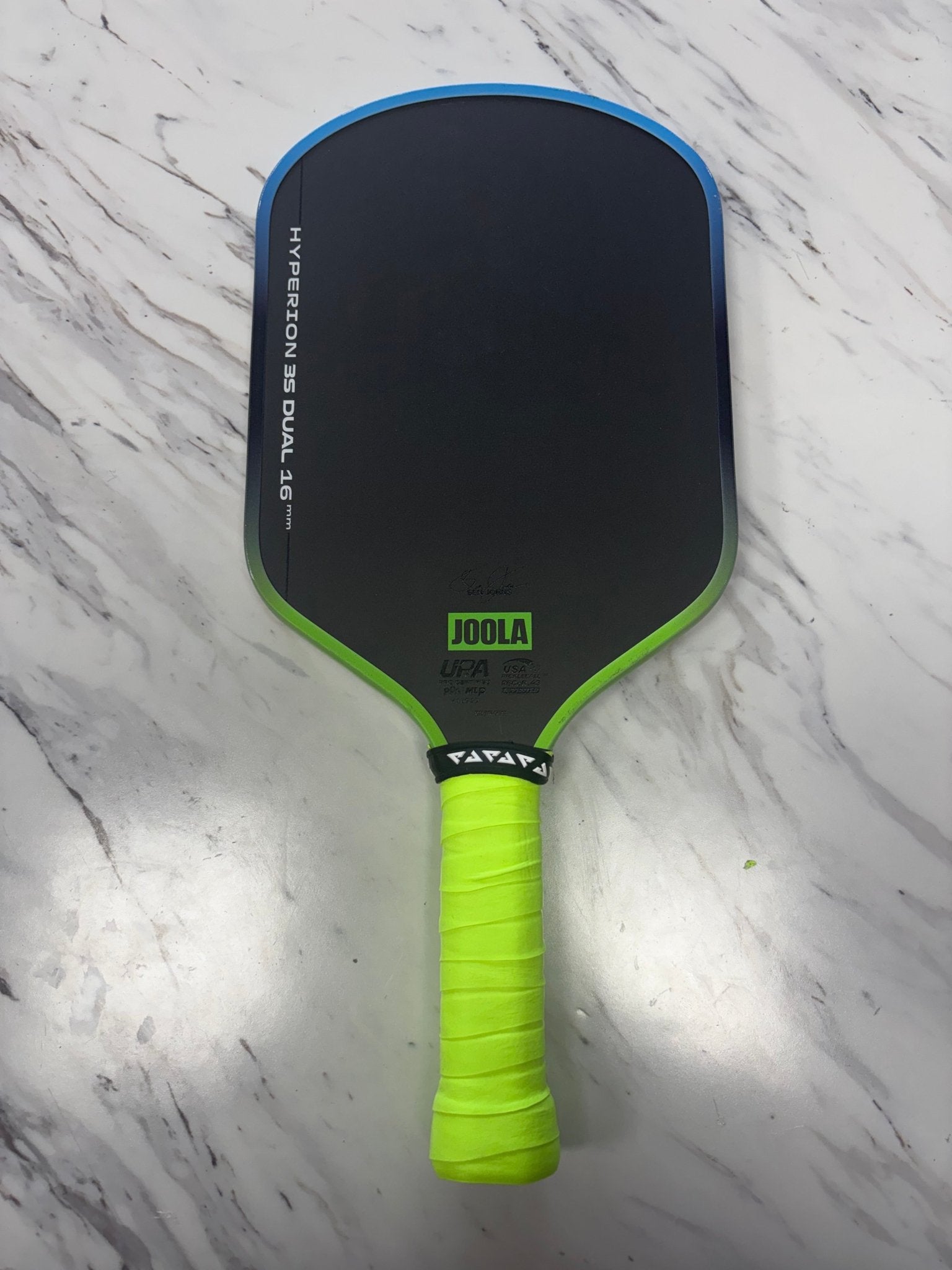 A dual-color gradient edge guard in Hyperion Blue & Green finishes the paddle with a fresh, performance-driven look that protects your edge while reinforcing JOOLA’s signature pro aesthetic.